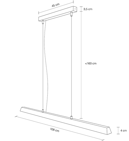 This lamp almost disappears into the room. A simple subtle line from which light flows out. Plenty of light. Just enough to illuminate your table.